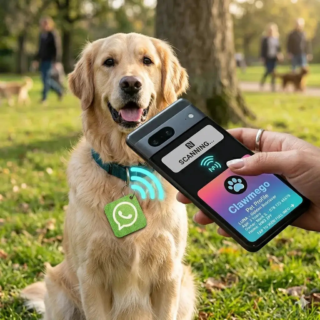 Traditional engraved ID tags wear out. QR codes need scanning apps. Taggo by Clawmego is different — it's a smart NFC tag that anyone with a smartphone can tap to instantly see your pet's profile, your contact number, and your location. No app needed.